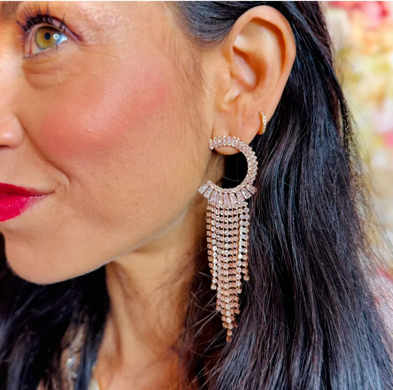 Orecchini strass a semicerchio a mono-orecchino. qualcosa di unico per impreziosire il tuo outfit.