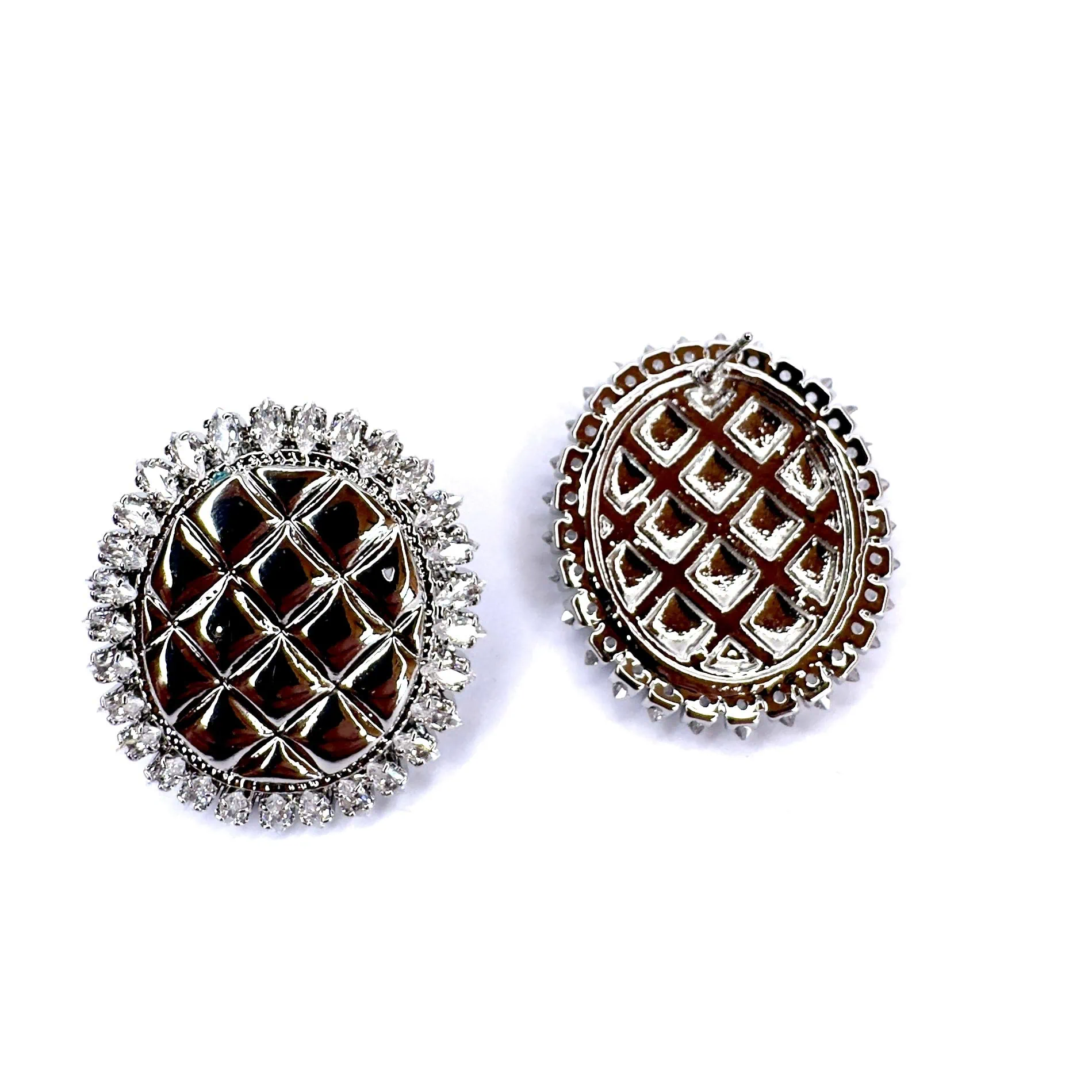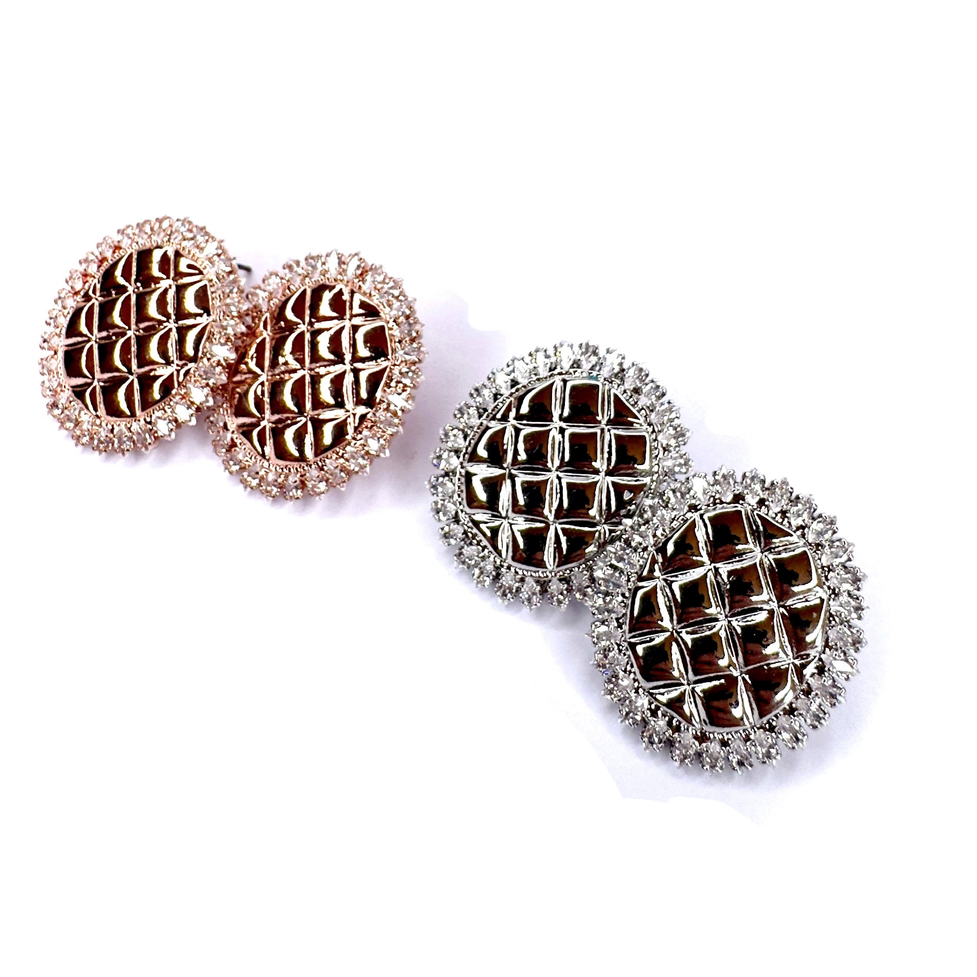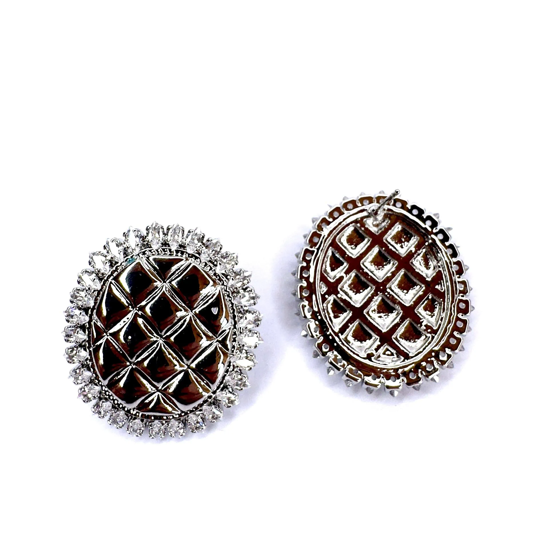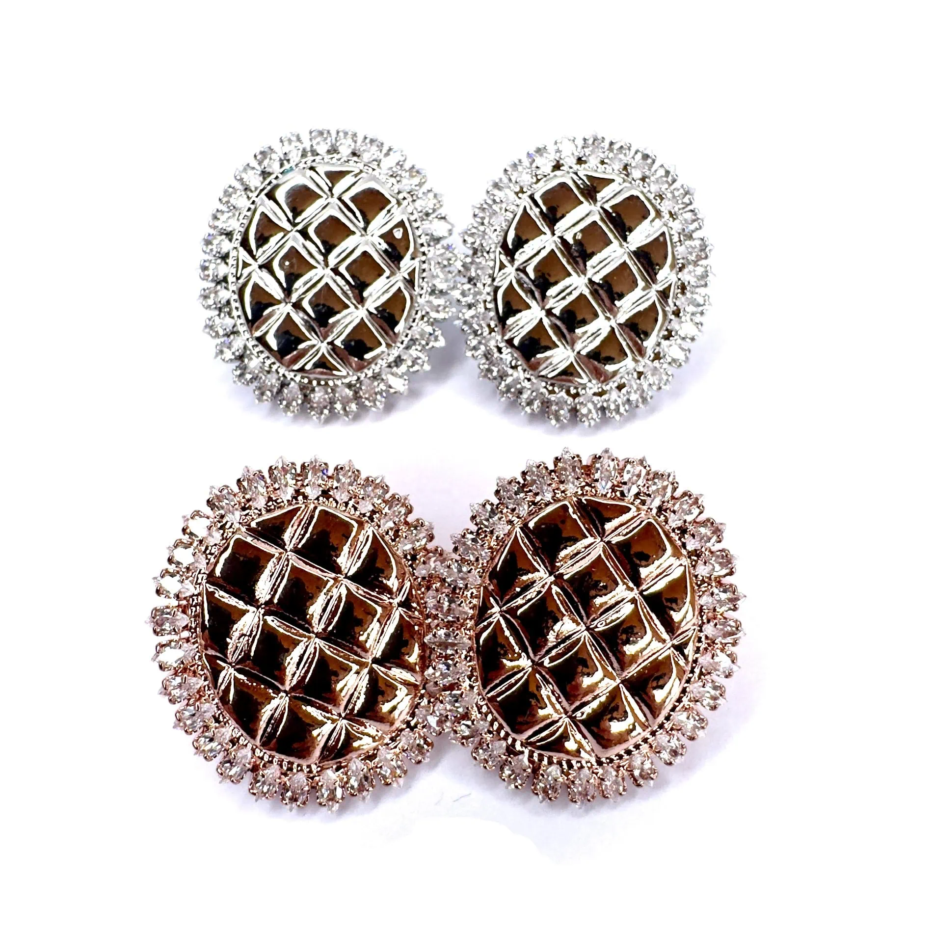 Orecchini vintage a bottone di forma ovale con lavorazione 3D per creare i dettagli effetto matelassé.