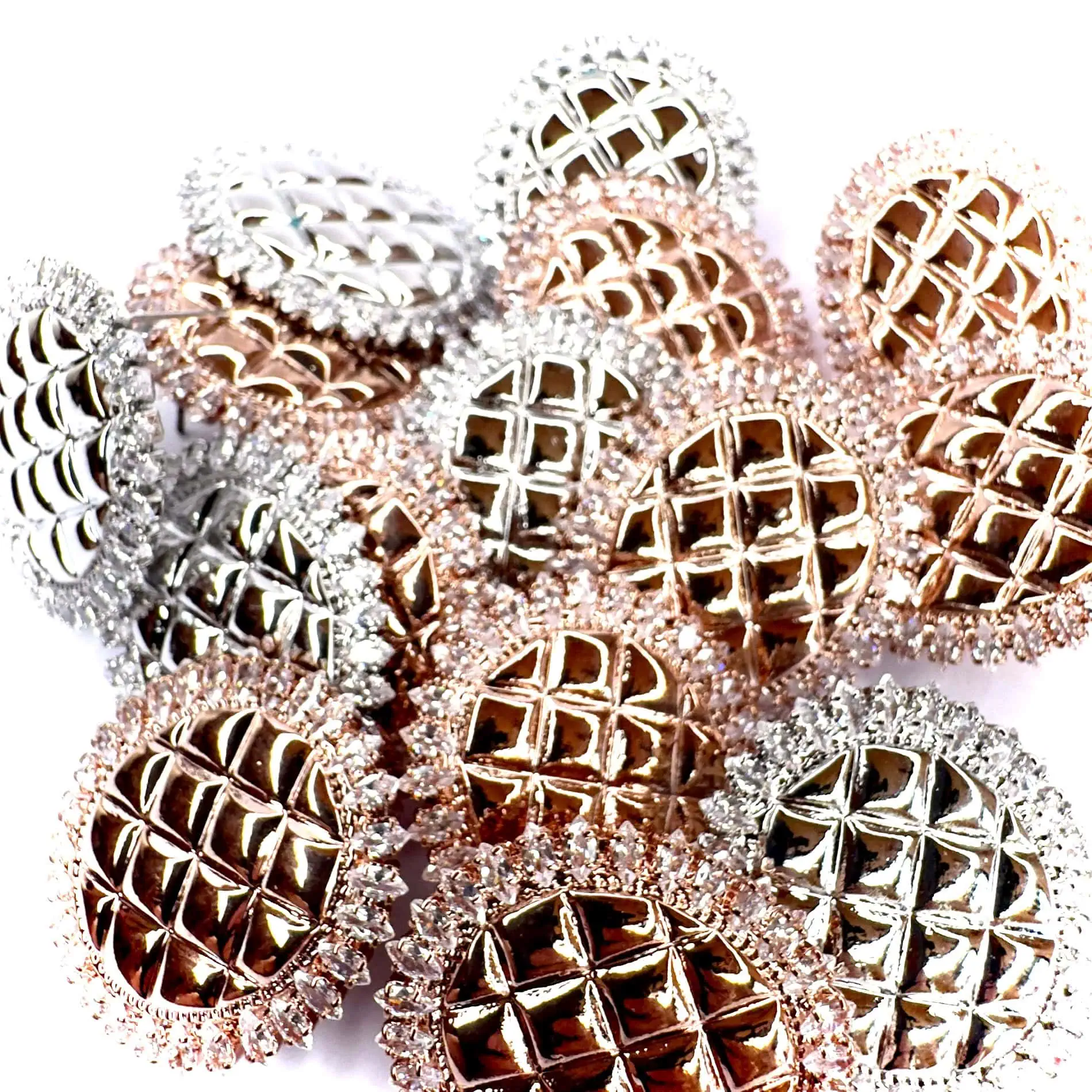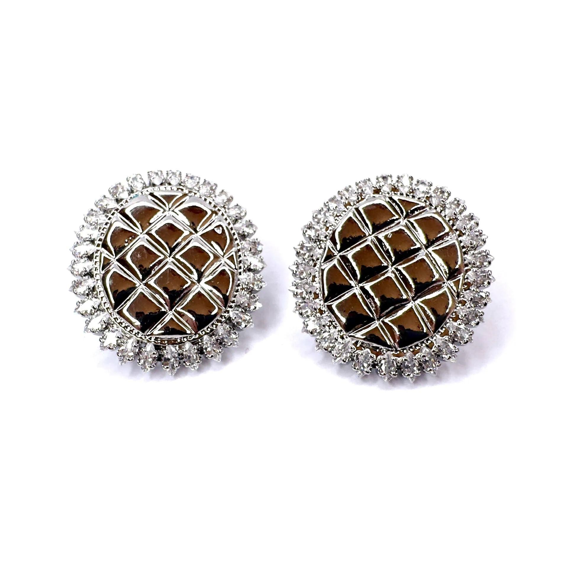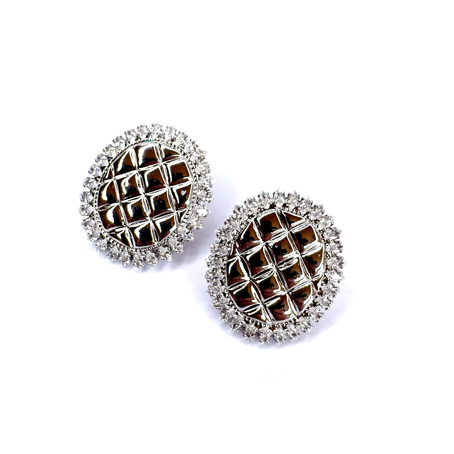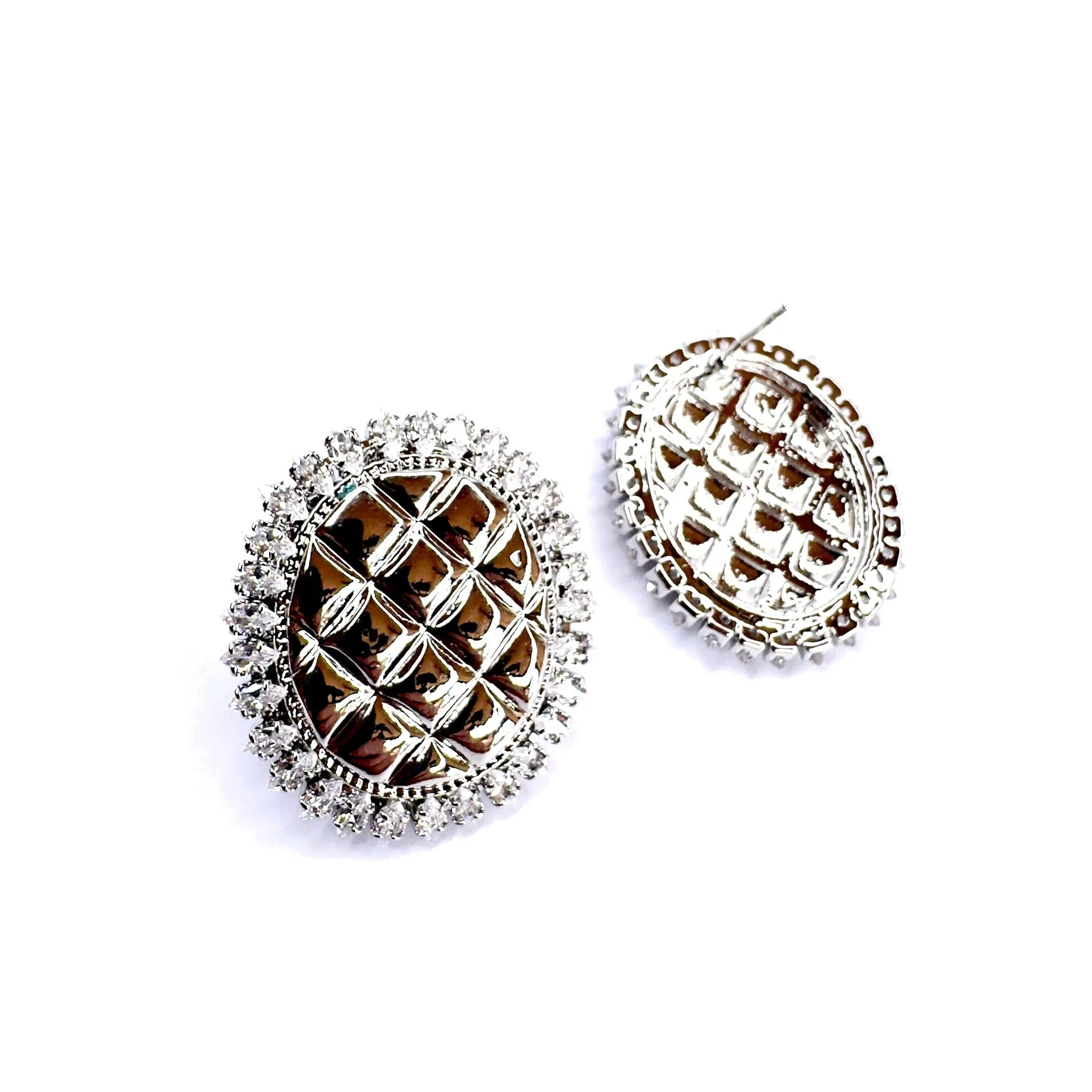 Orecchini vintage a bottone di forma ovale con lavorazione 3D per creare i dettagli effetto matelassé.