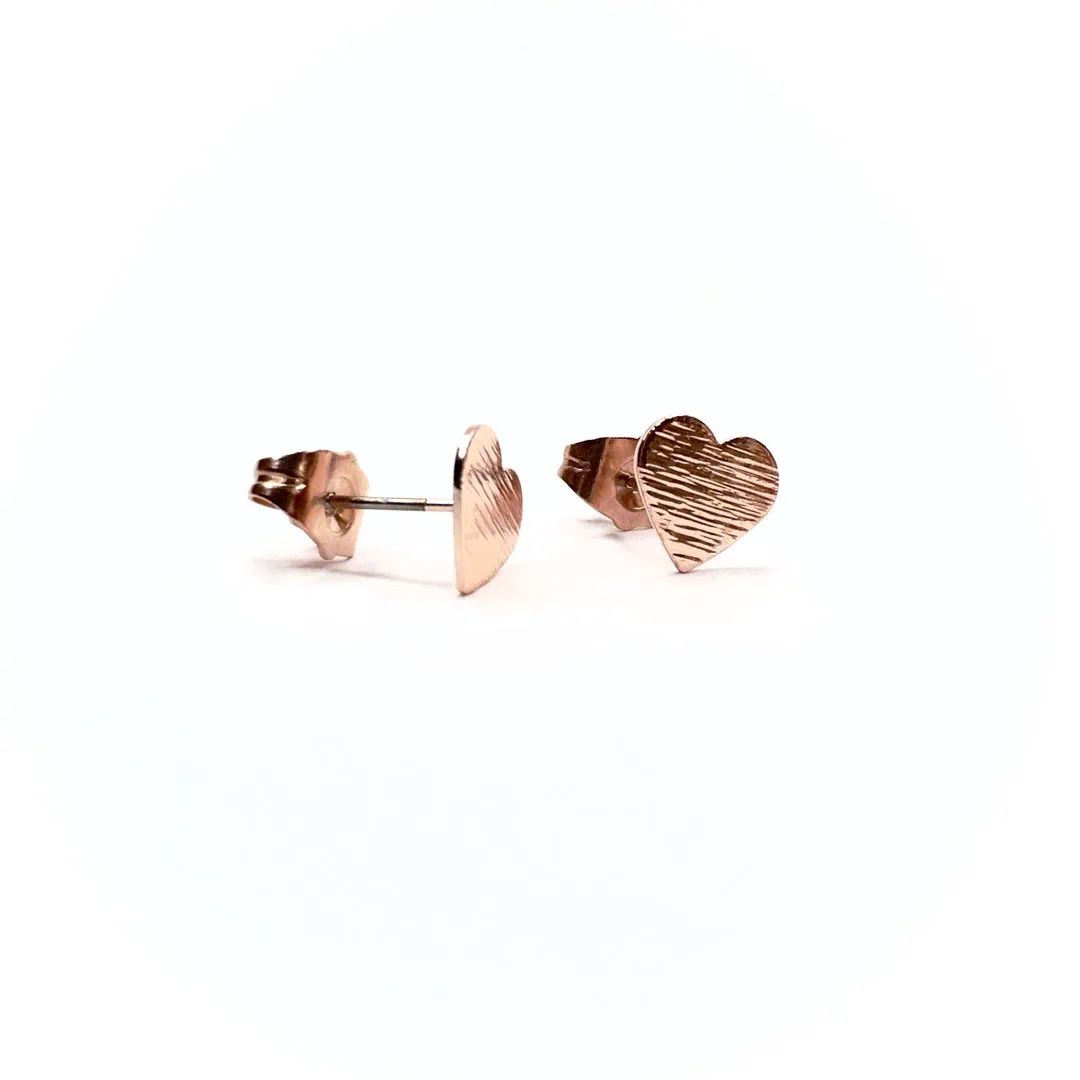 Orecchino cuore della Linea Micro in acciaio placcato oro rosa.