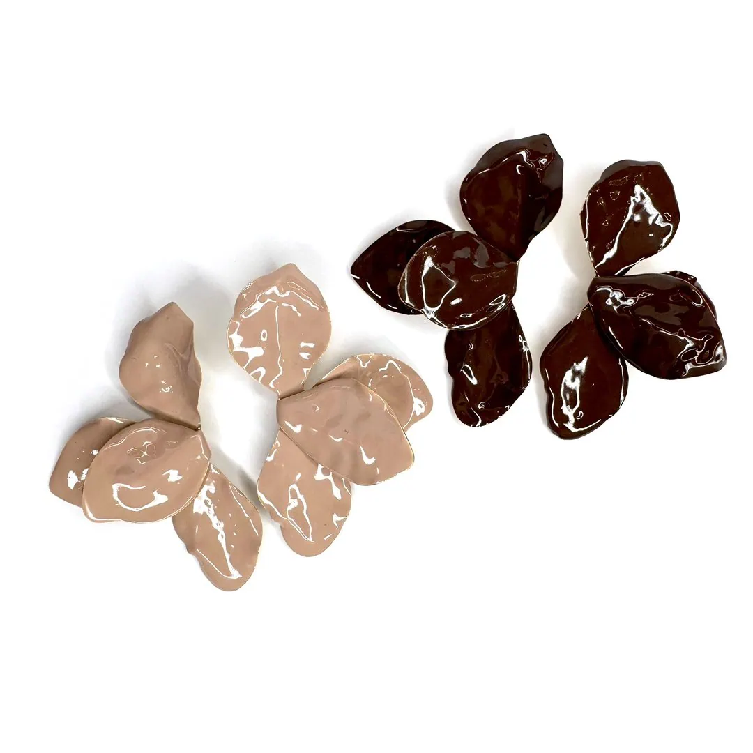 Disponibile nelle ricercate varianti smalto nude e cioccolato, questo orecchino si rifà a un mood organico e raffinato. I toni naturali della terra e della pelle lo rendono un accessorio camaleontico, capace di esaltare un outfit minimal da giorno o completare con classe un look serale. La delicatezza del fiore incontra la modernità cromatica per un gioiello che celebra la tua natura autentica.