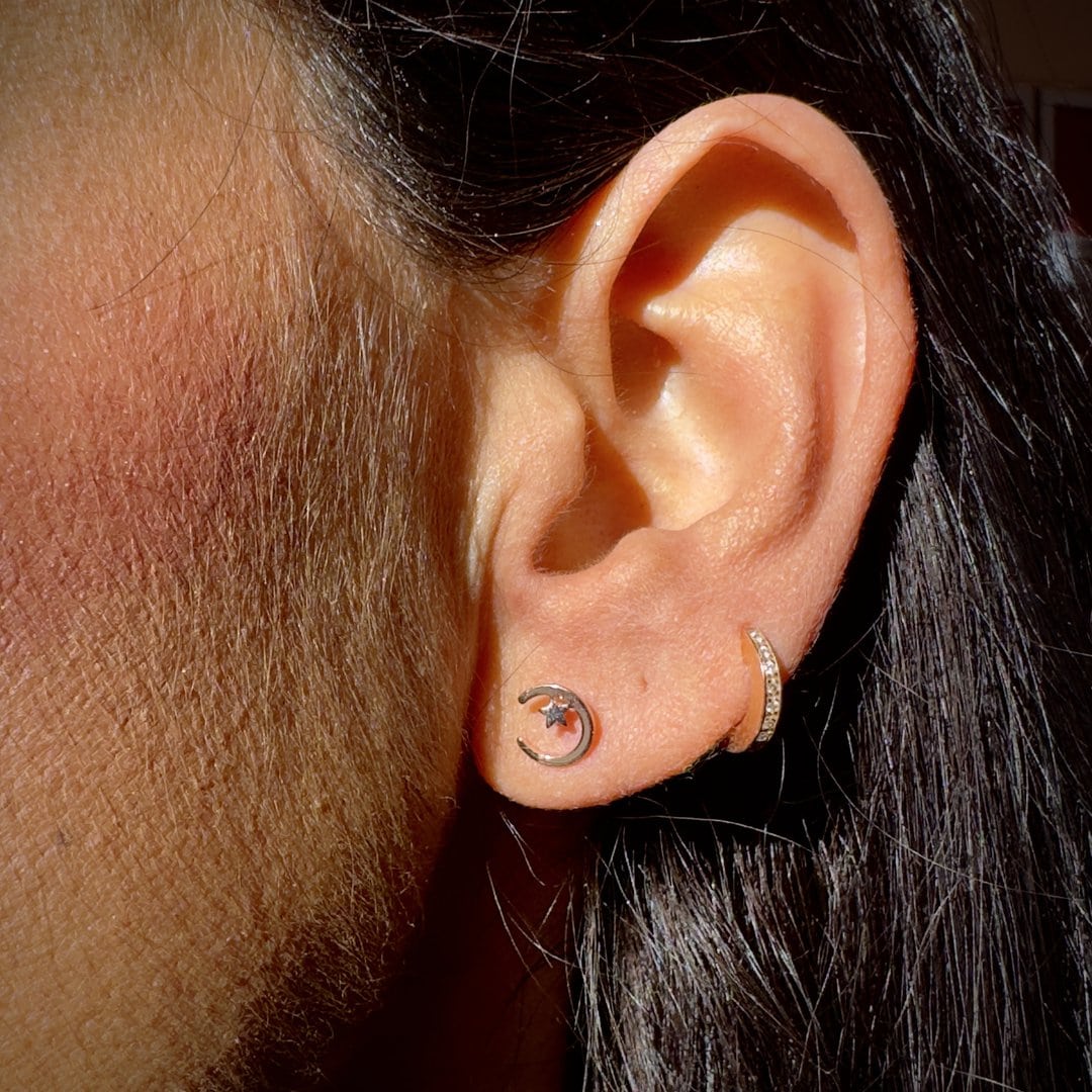 Orecchino luna della Linea Micro in acciaio placcato oro rosa.