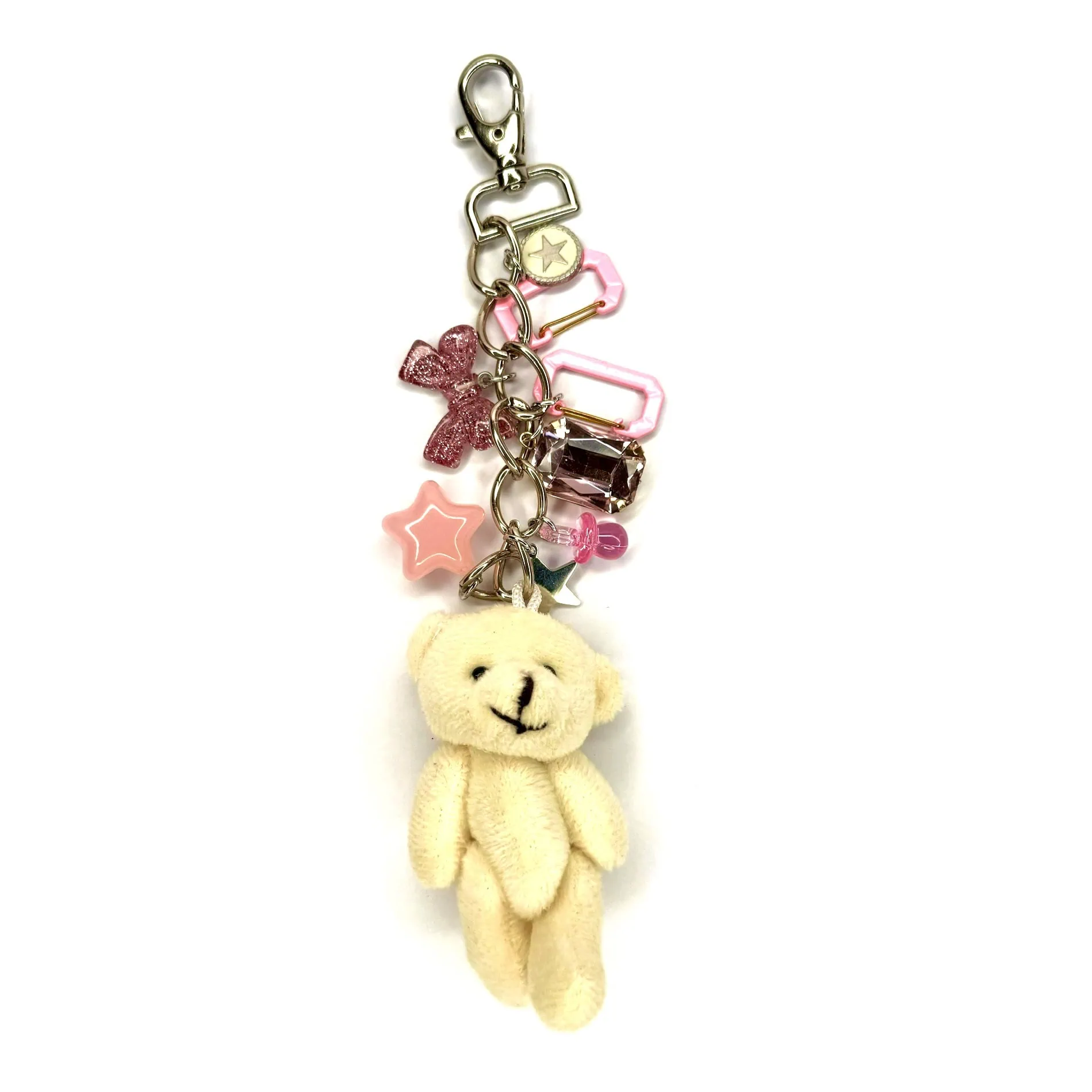 Portachiavi donna con charm peluche Teddy e tantissimi charm colorati.