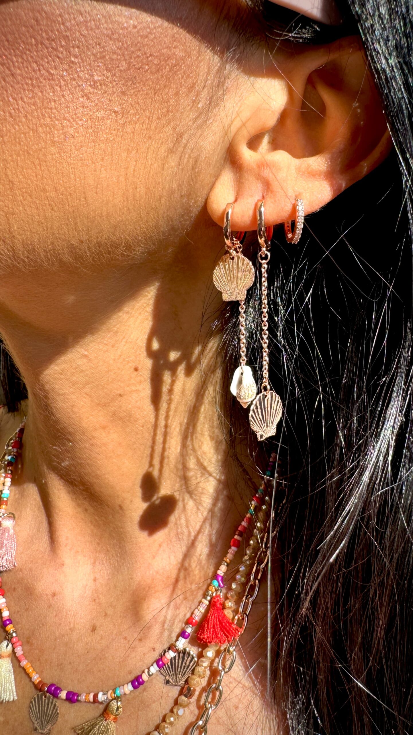 - Set Girocolli e Orecchini lunghi con Conchiglia Atlantis in acciaio placcato oro rosa