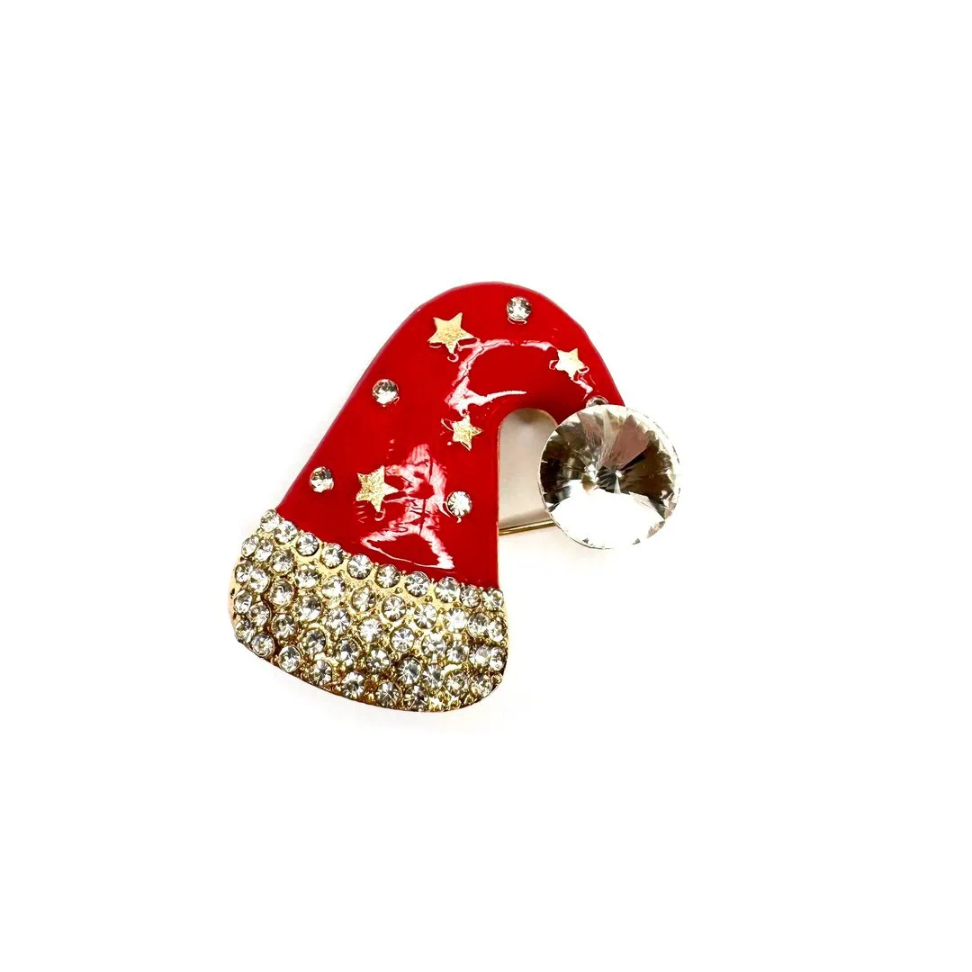 Spilla natalizia con pietra in vetro cristallo a forma di cappello di Babbo Natale per essere brillante sotto le feste.