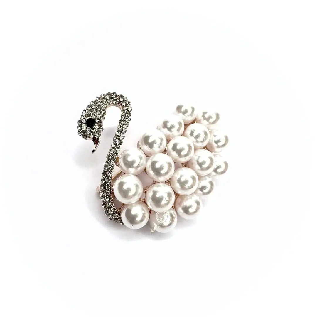 Spilla swarovski cigno in perle e strass.